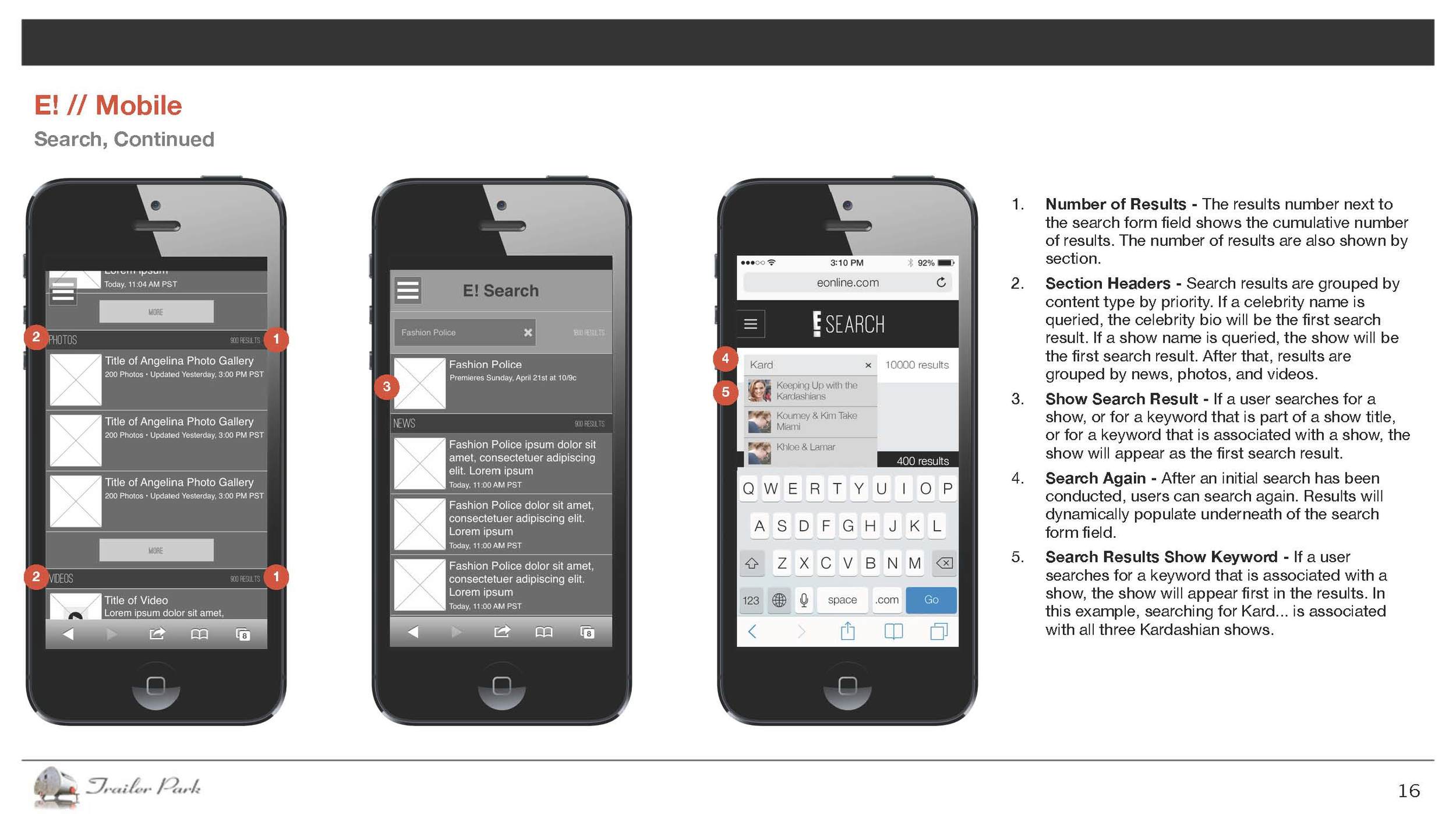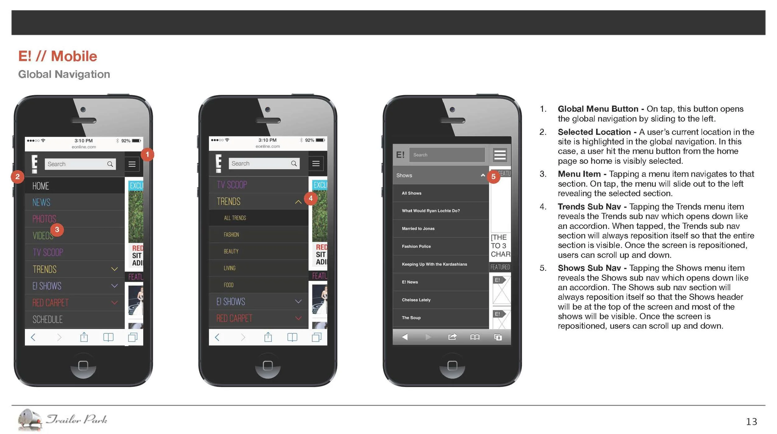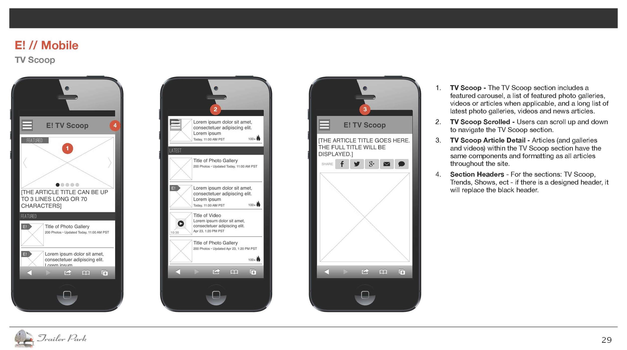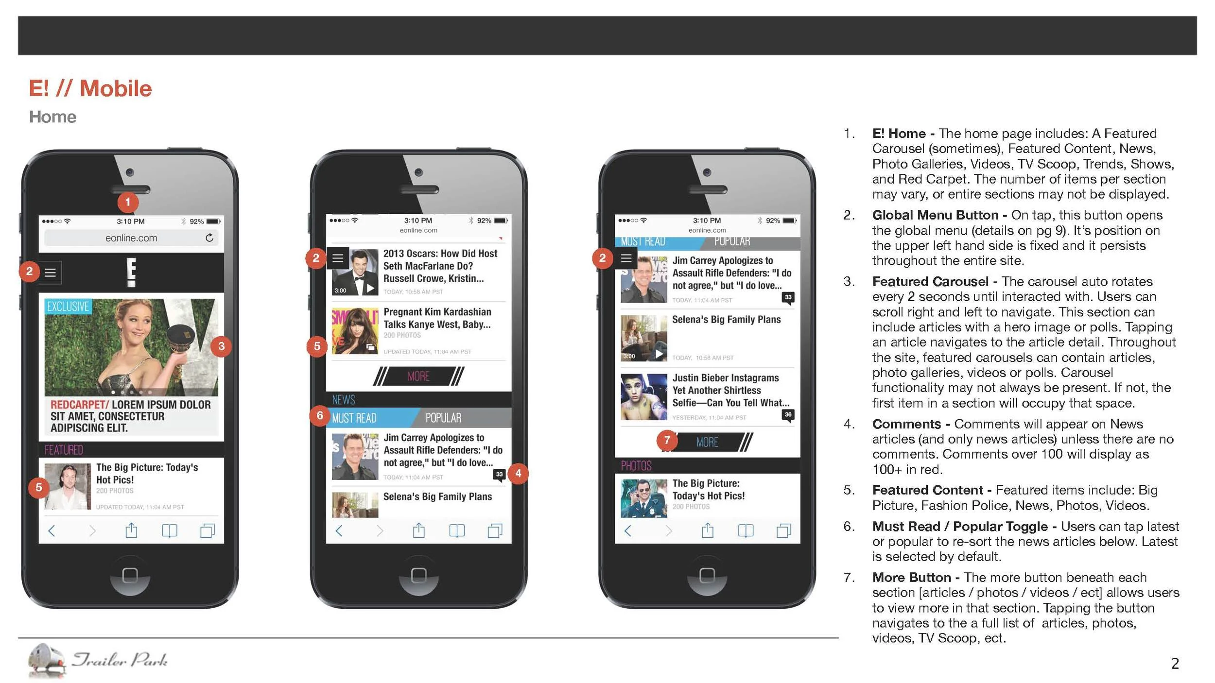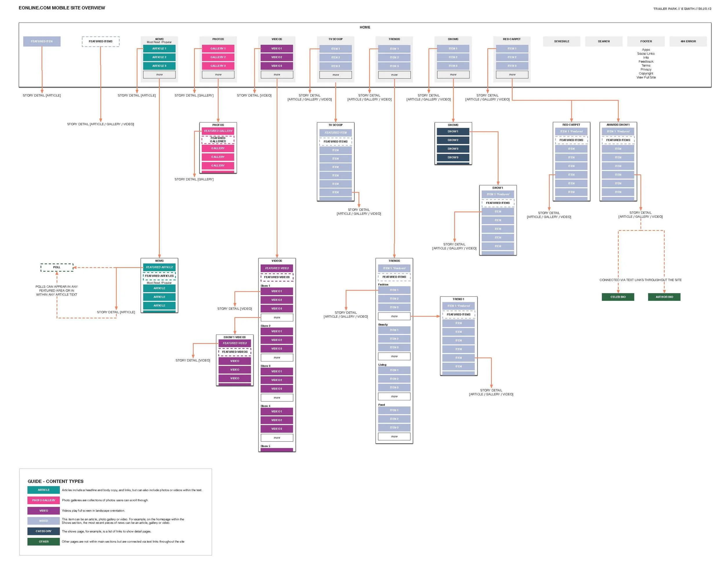 As the UX Designer on the project, I created site maps and annotated wireframes that communicated the structure, form and interactions of the website. I worked with the client and a small team of designers and developers to create an experience that was enjoyable and engaging for E!’s readers.