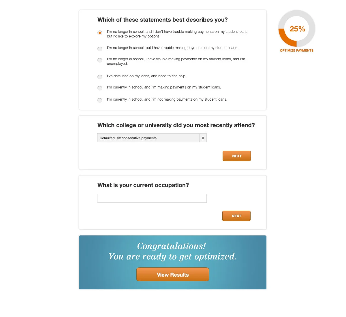 As a freelance UX / UI designer for the company, I standardized UI elements across the site including button styles, forms, graph styles and fonts. I designed new features of the tool including the subscription process and loan optimization questionnaire.
