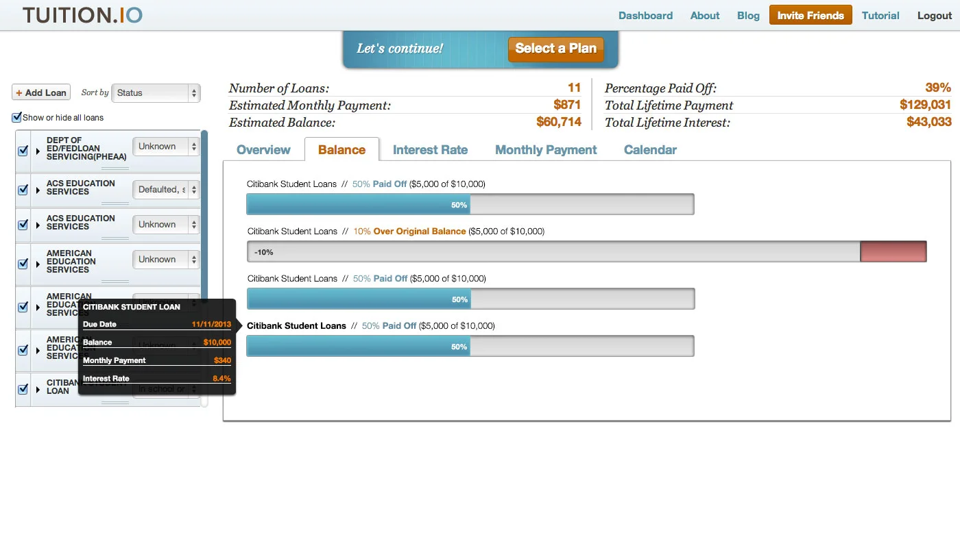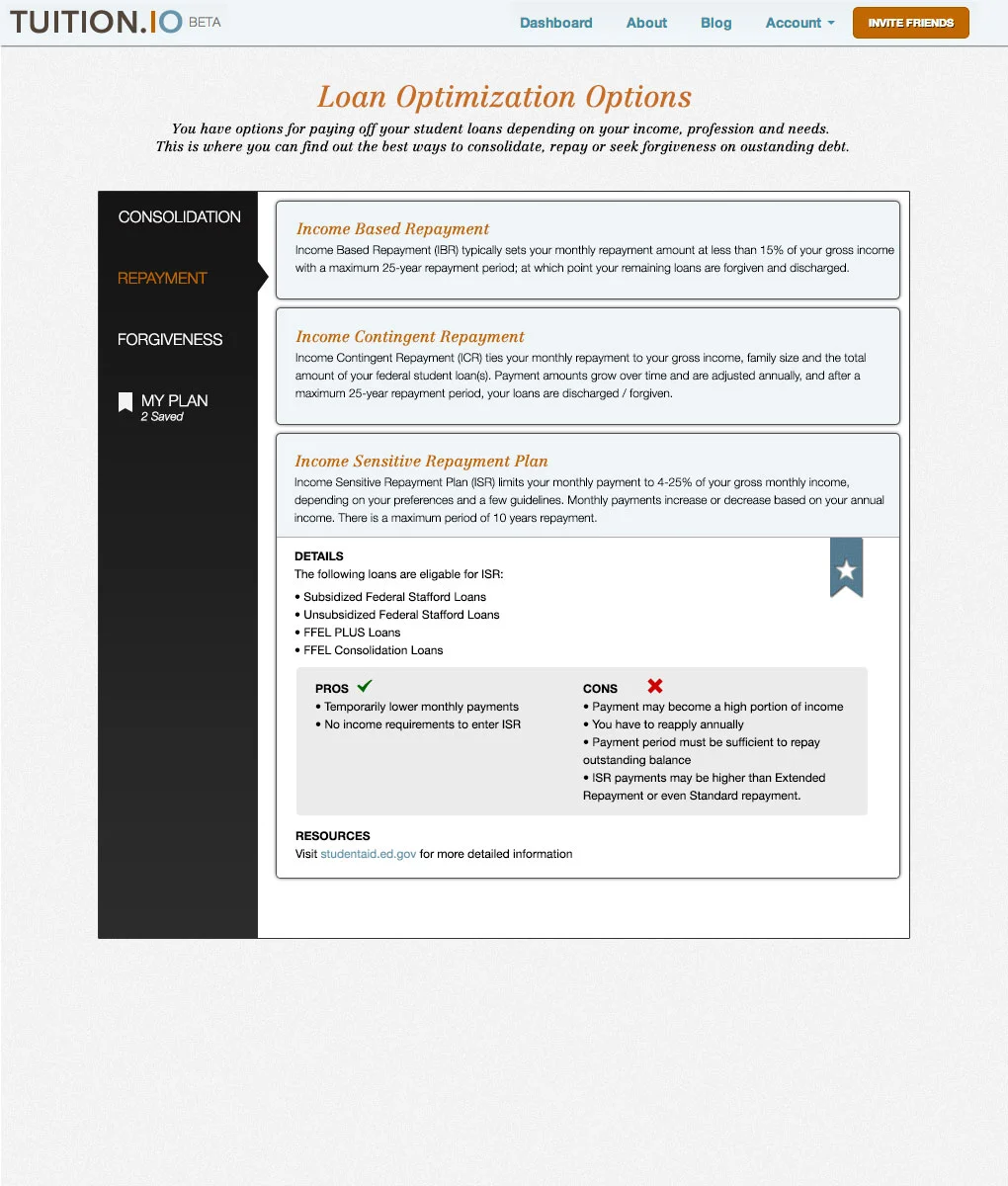 Polish and refine the visual language and user experience of Tuition.io. Tuition.io is an online student loan optimization tool.